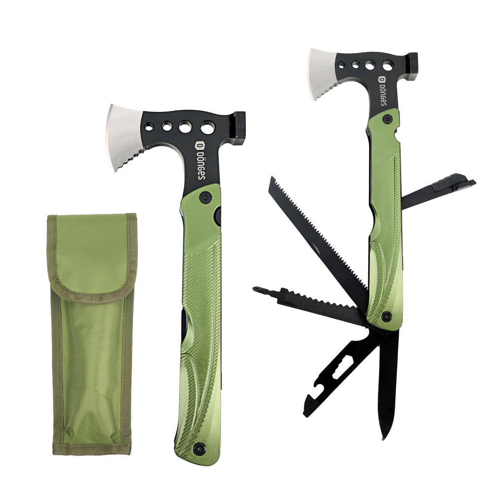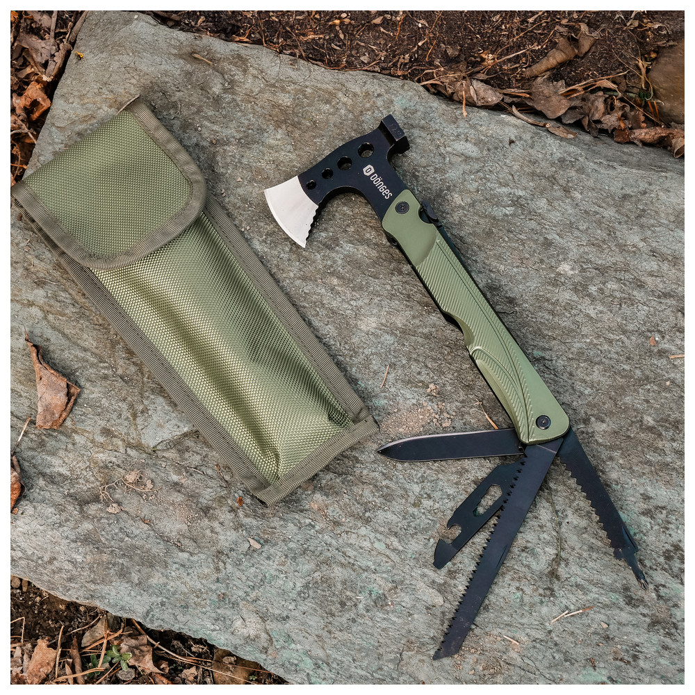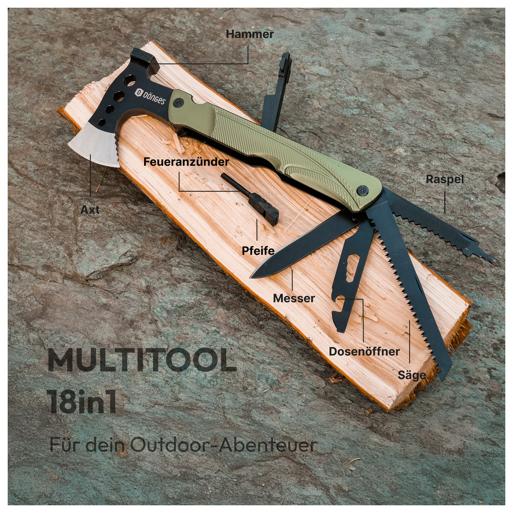 - Dein ultimativer Survival-Begleiter - Ob in der Wildnis, beim Zelten oder auf der nächsten Abenteuerreise: Dieses Multitool mit Axt, Hammer, Taschenmesser und Schraubendreher macht dich unabhängig in jeder Situation!- Feuer, Schutz & Signal - Alles in einem! - Mit dem integrierten Feuerstein entfachst du überall ein Feuer, die laute Pfeife sorgt für Sicherheit, und das scharfe Multifunktionsmesser hilft dir beim Schneiden, Schnitzen oder Jagen.