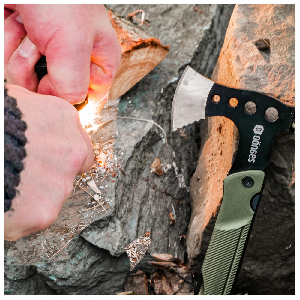 - Maximale Power in kompaktem Design - Als Campinghammer, Survival-Tool und multifunktionales Werkzeug bietet dieses Camping Zubehör alles, was du für harte Einsätze brauchst - vom Feuerzeug-Ersatz bis zur stabilen Axt für Holzarbeiten.