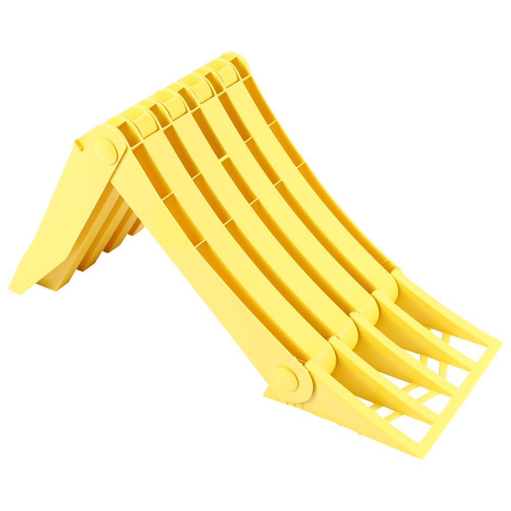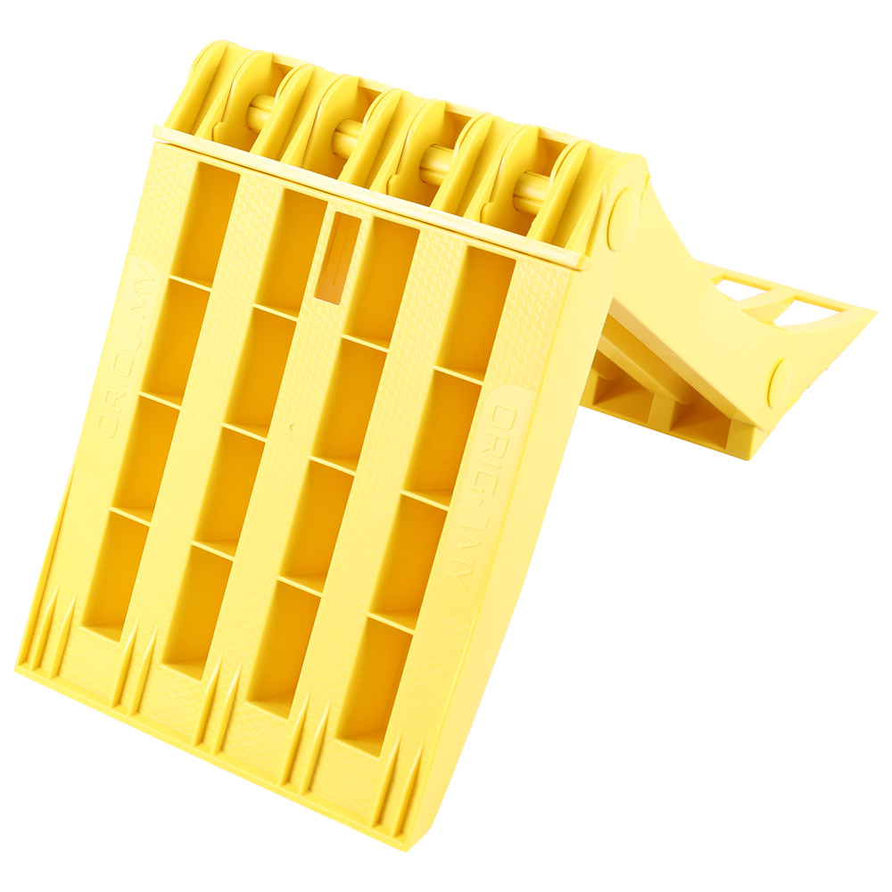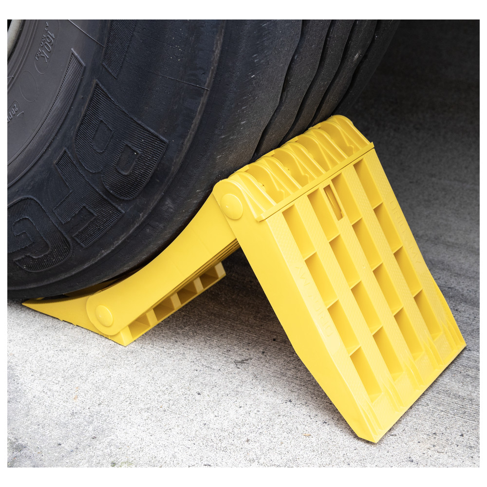 Die auffällige gelbe Farbe und die reflektierenden Streifen sorgen für gute Sichtbarkeit, erhöhen die Sicherheit und verhindern Unfälle. Der Origamy Hemmschuh ist ein unverzichtbares Zubehör für Autobesitzer, Wohnmobilfahrer, LKW-Fahrer und alle, die Wert auf sicheres Parken legen.
