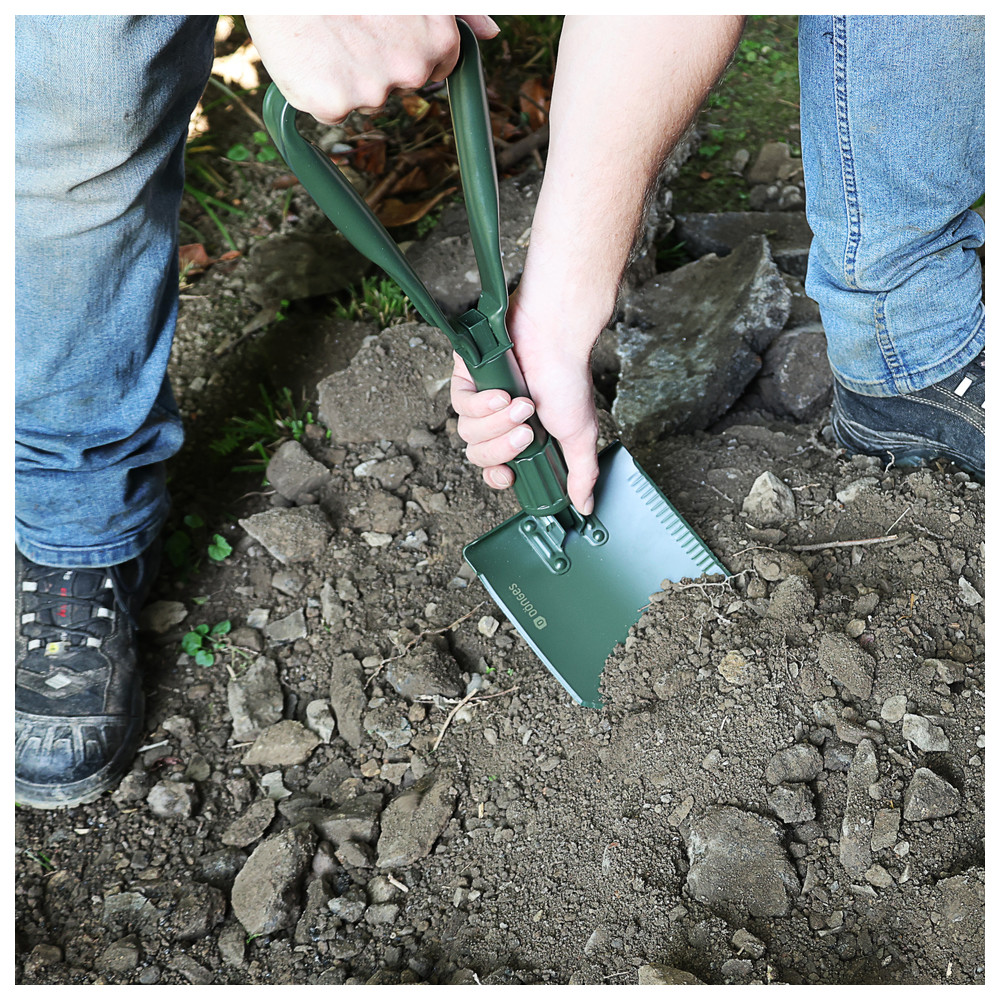 - Maximaler Platz, minimales Packmaß: Dieser Spaten lässt sich ultrakompakt zusammenfalten und schmutzfrei in seiner Tasche verstauen, perfekt für Rucksack oder Auto.