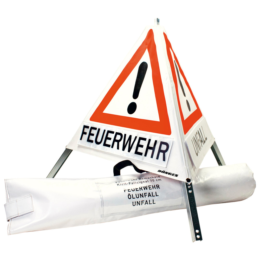Dönges Klett-Faltsignal, 900 mm, Tagesleuchtfarbe, Feuerwehr, Unfall, Ölunfall