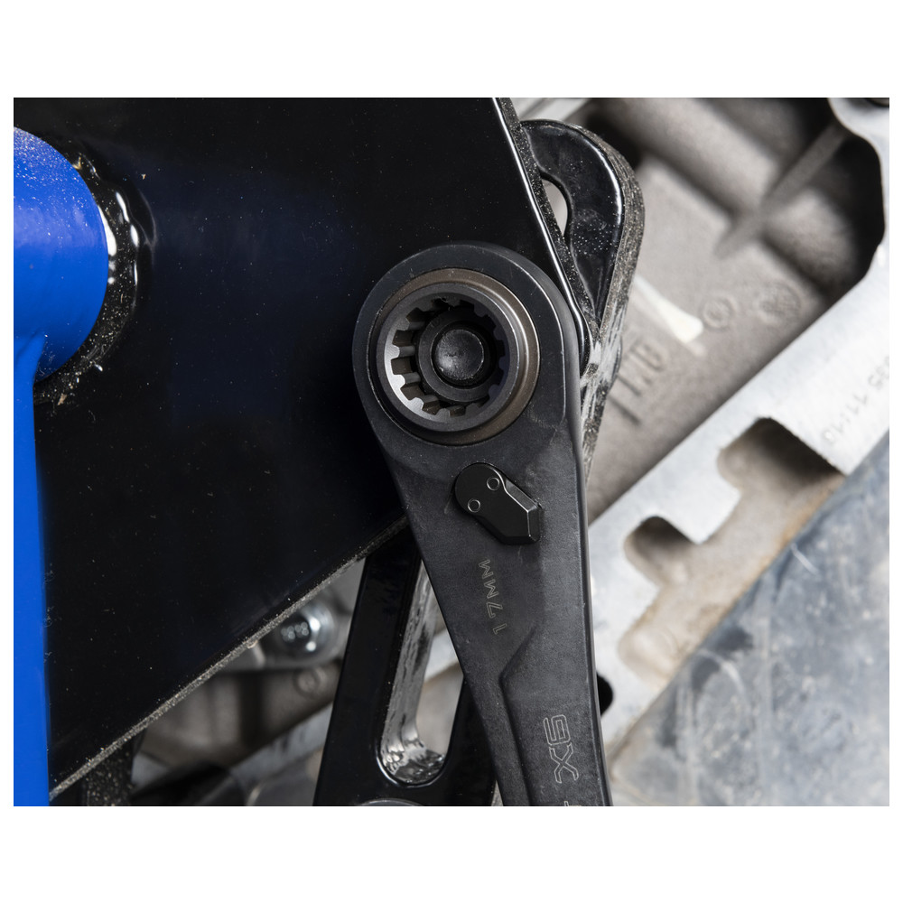 - Minimaler Betätigungswinkel von 5°- Universal Spline-Ringseiten passen auf alle gängigen Schraubenköpfe (4-kant, 6-kant, 12-kant, E-Torx, Spline)