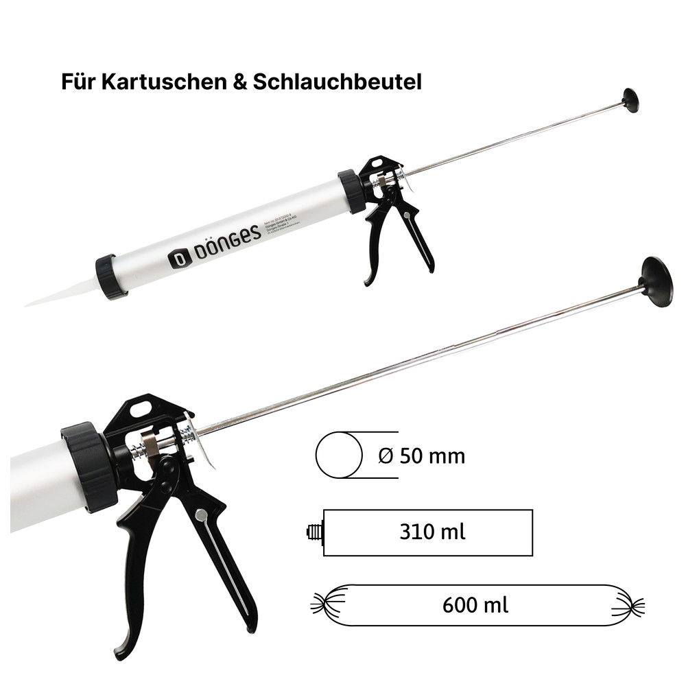 In addition to its precision and ease of use, the PROFI push cartridge gun is also built to last. Its sturdy metal parts guarantee long-lasting durability, making it a reliable tool for any technician. You can be sure that the Dönges PROFI-Schub cartridge gun will be a faithful companion for a wide range of projects and applications.