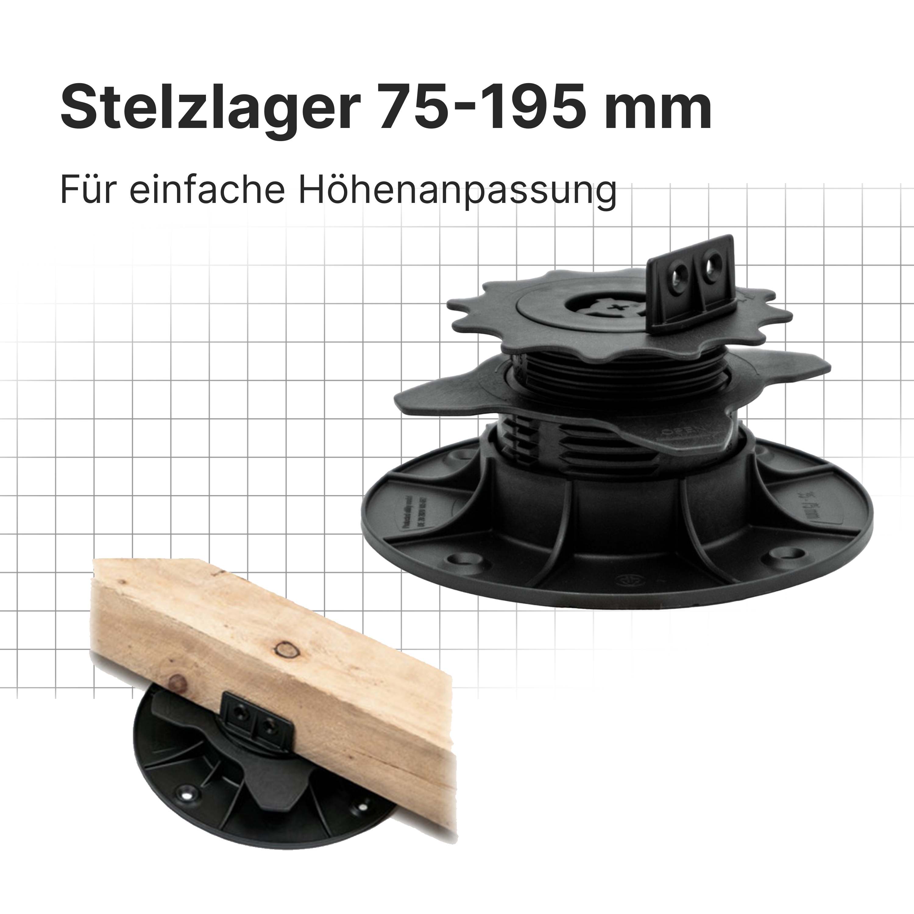 - Höhenverstellbar: Das Stelzlager ermöglicht eine flexible Anpassung für eine präzise Installation.