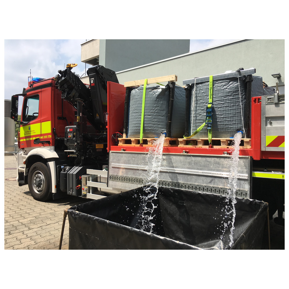 Whether firefighting water transport, forest fire operation, as a salvage container for damaged products or for fire water retention - the Multi-Flex container convinces with its versatility. The container can also be used as a retention container for decontamination scenarios, storm protection as a ballast tank or also as a nonlocal terror barrier, as well as a flexible flood protection.