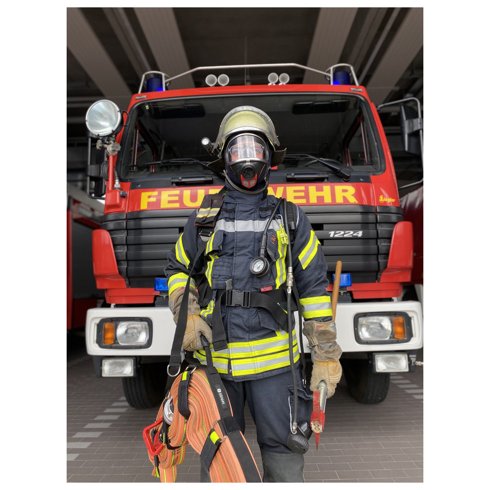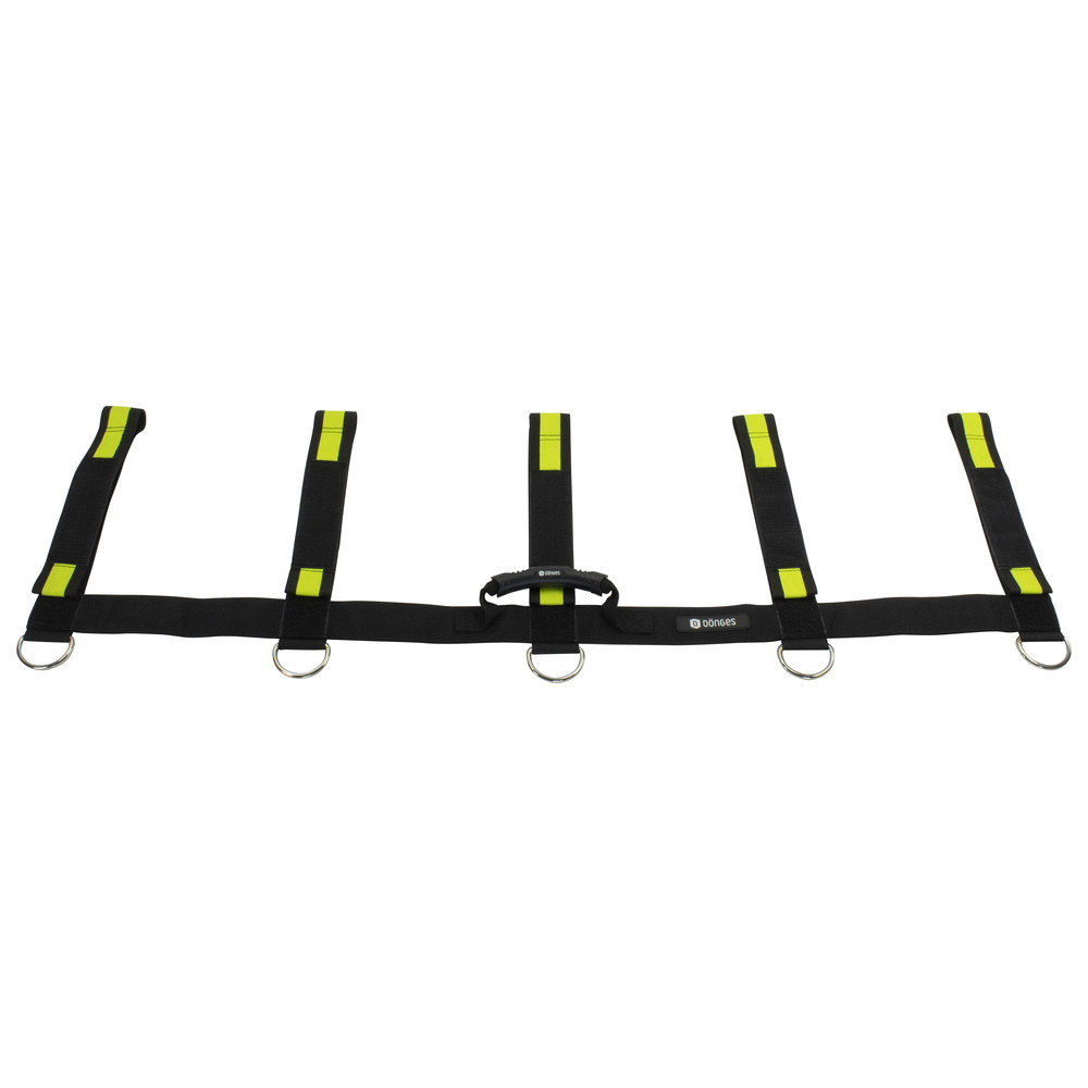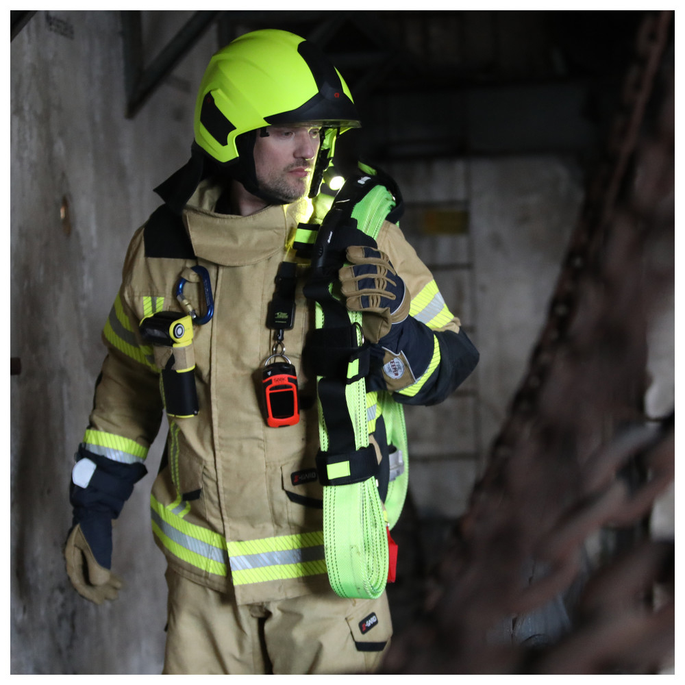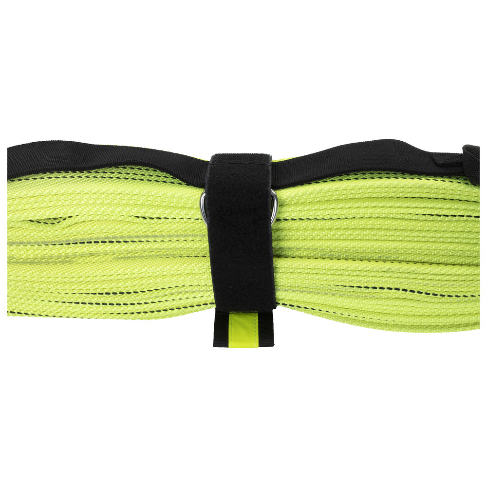 With the System II the Velcro tape can either be fed through the D-ring for permanent fixation, or the package can simply be wrapped with the Velcro. Due to the lower holding force during wrapping, the Velcro straps are released when pressure is applied to the hose. This supports a fast and easy hose laying whilst a fireman advances towards the fire.